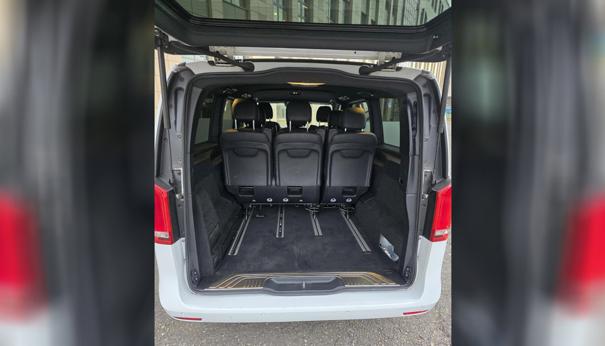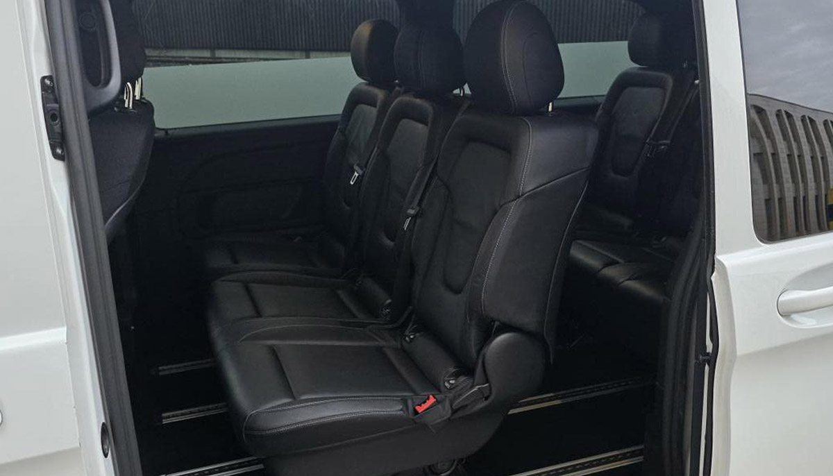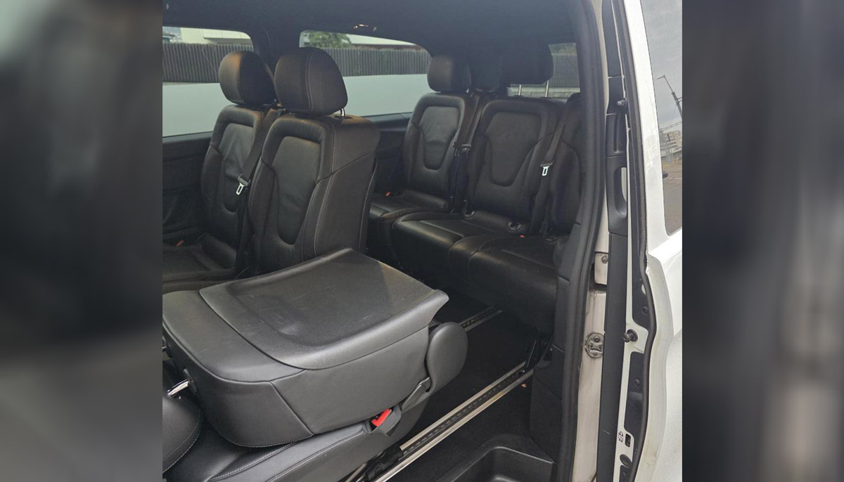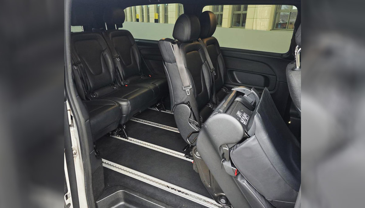 Aktuell ist das Fahrzeug mit 7 Sitzplätzen ausgestattet(Zwei Sitze vorne, zwei Einzelsitze hinten und eine 3er Bank in der zweiten Fondreihe). Auf Anfrage könnte man auch prüfen, ob 8 Sitzplätze verbaut werden könnten, bei Verfügbarkeit.