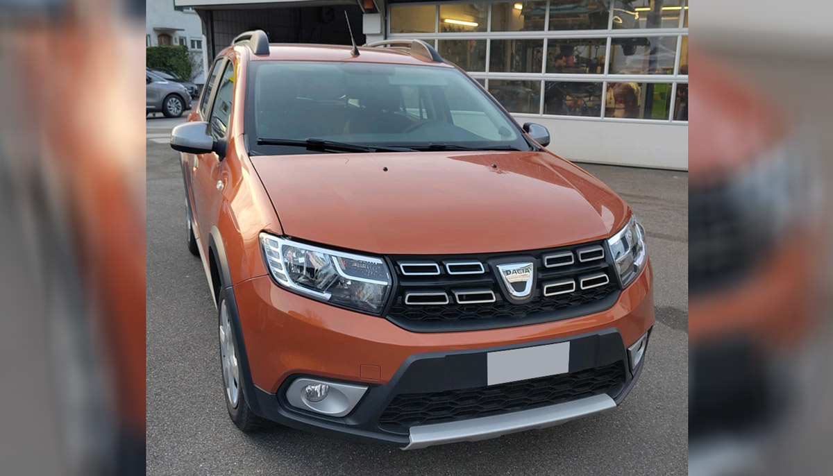 Oranger Dacia Sandero Stepway. Praktisches Auto, hat alles was man braucht und nichts was man nicht braucht :). Haustiere sind erlaubt, kann mit oder ohne Hundegitter gemietet werden. Handyhalterung vorhanden, Kabel und USBA Ladebuchse kann ich nach Bedarf auch drinn lassen. DAB Radio Bluetooth und Aux vorhanden. Verbrauch ca. 5-5.5 l/100km. Kofferraum ist überraschend geräumig. Motor hat 90 PS. Autobahnvignette vorhanden.